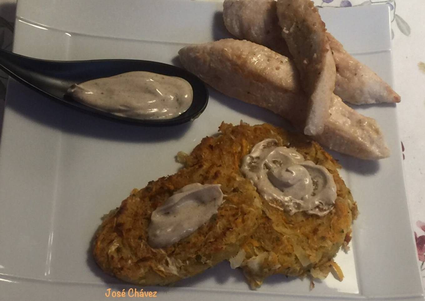 - Asar las pechugas cortadas al gusto salpimentadas y ajo en polvo. Para la Alioli añadir el 1/2 ajo negro en un vaso batidor con la Mayonesa y triturar. Queda muy rica esta salsa y el pastel queda tan delicioso que te lo comes solo 😋😋.