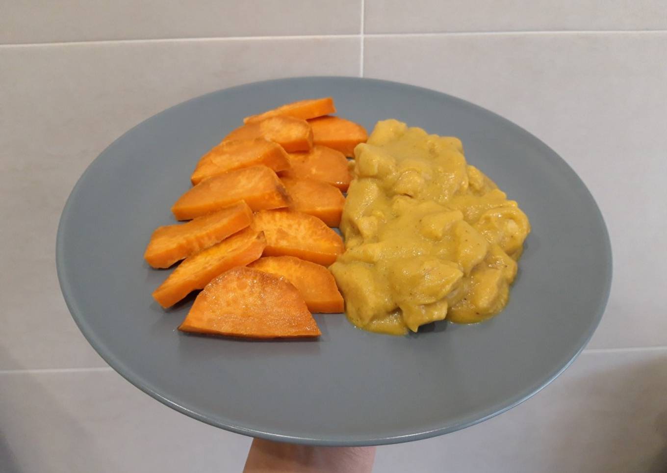- Se puede acompañar con arroz, quinoa, etc. Yo en este caso lo he acompañado de boniato hecho al vapor.