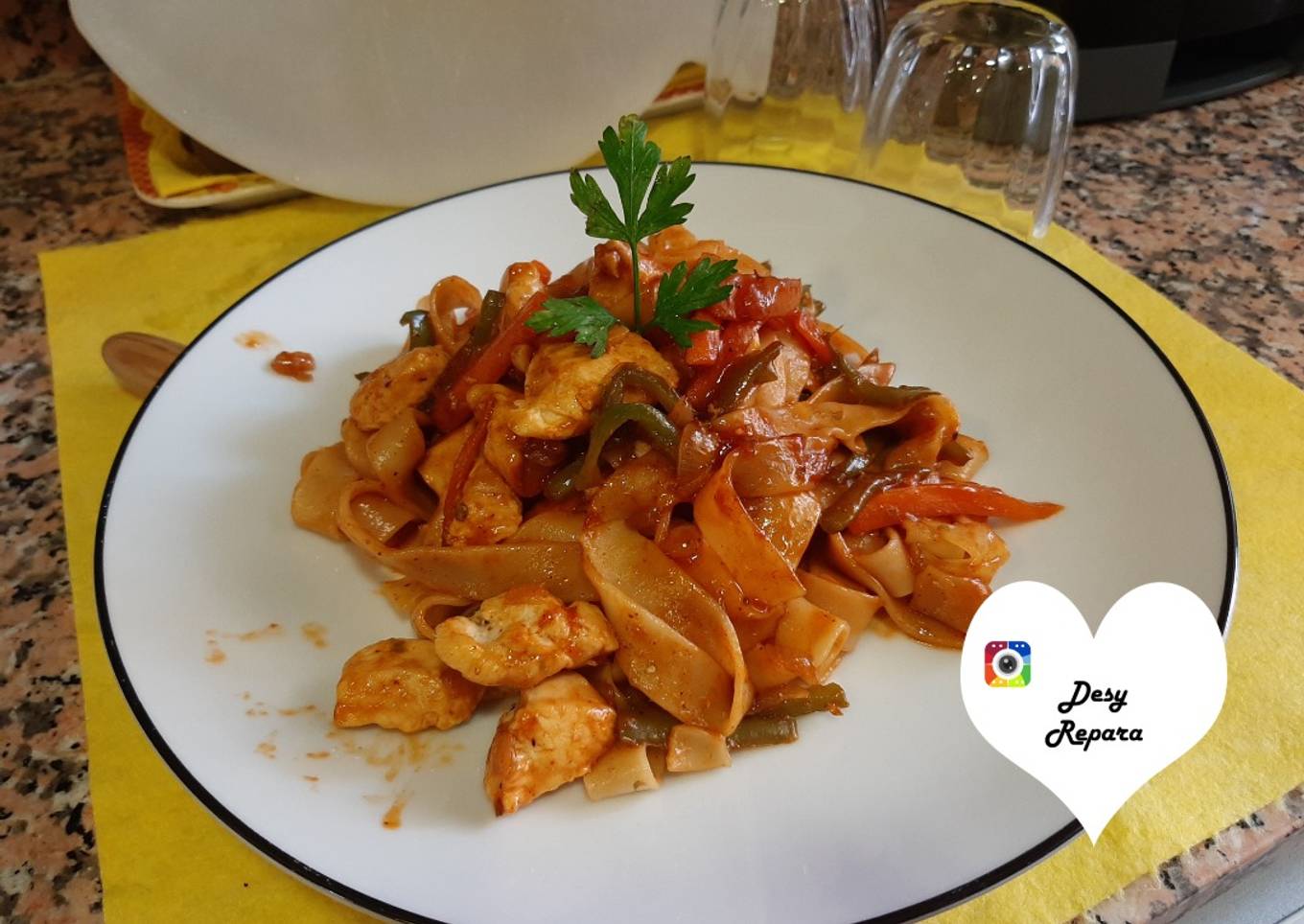 Hey everyone, it is me, Dave, welcome to my recipe page. Today, we're going to make a distinctive dish, Tallarines con pollo en salsa bbq. One of my favorites food recipes. This time, I will make it a little bit tasty. This is gonna smell and look delicious.