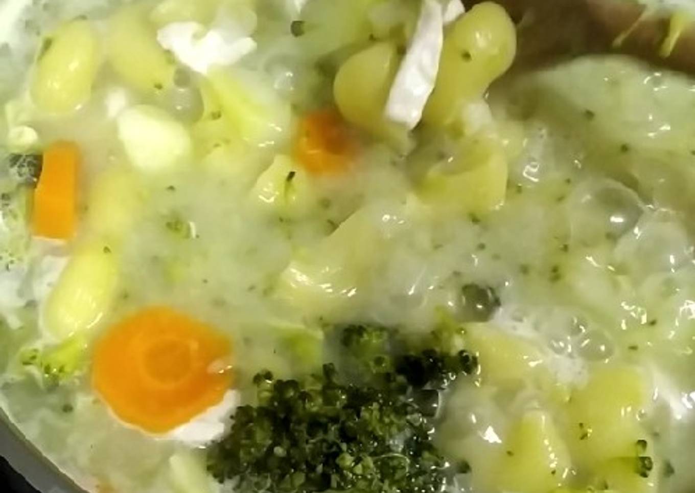 - En una olla grande, vertemos los briks de caldo de pollo o verduras y cuando vemos que hierve metemos las caracolas o fideos.