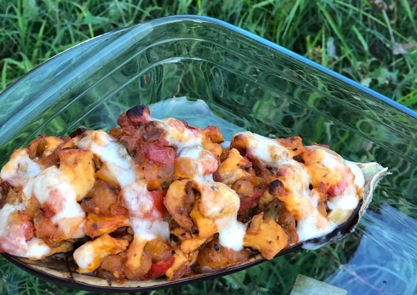 - Rellenamos las berenjenas que previamente habíamos vaciado y le ponemos queso encima y gratinamos al horno! Y listo!