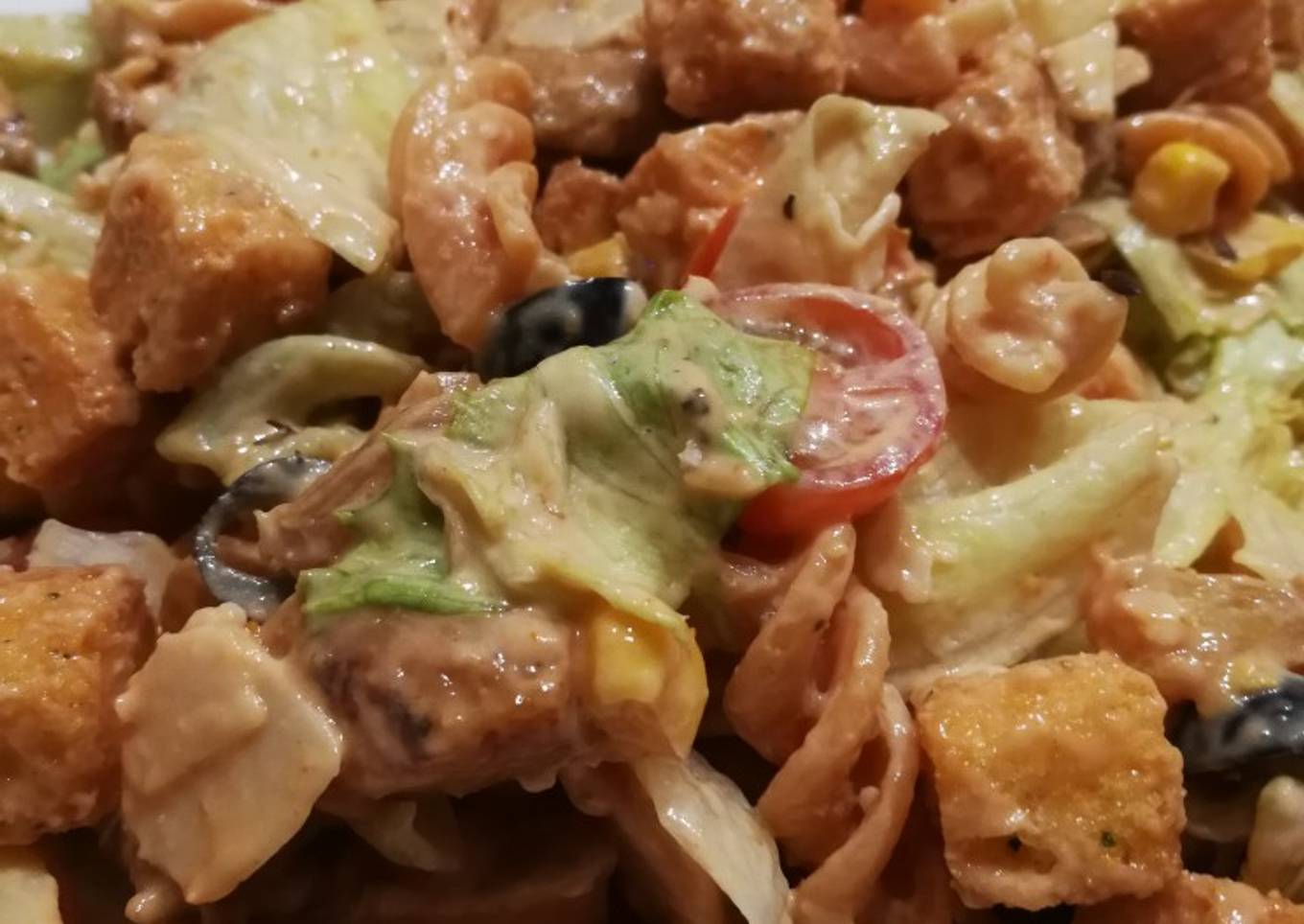 - Echas la salsa en la ensalada y mueves